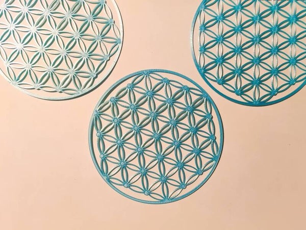 Utilisez la géométrie sacrée de la fleur de vie pour recharger vos pierres, vos bijoux, ou simplement en décoration.