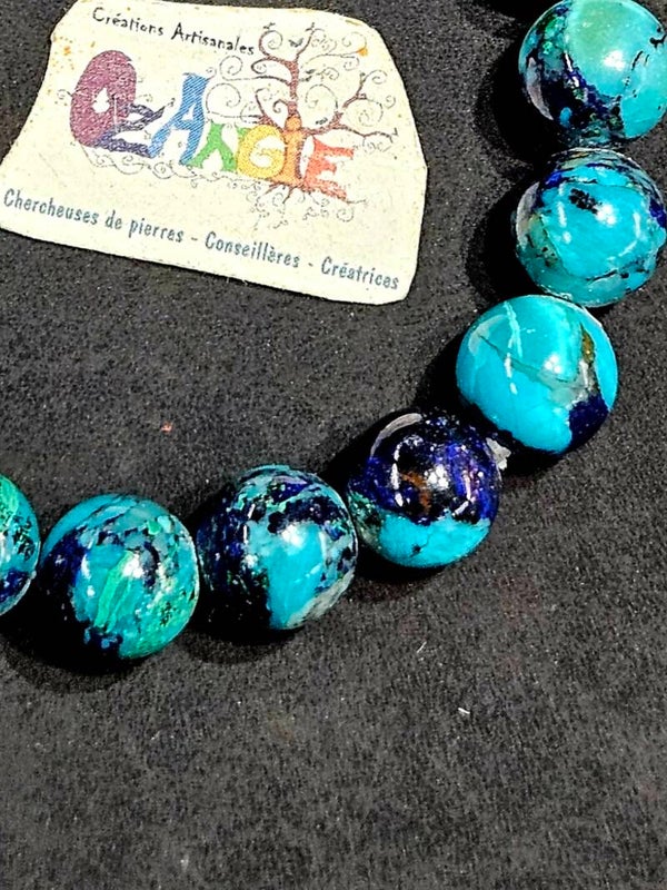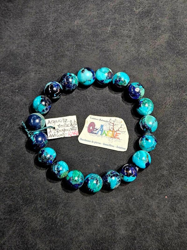 Bracelet élastique en Azurite-Malachite-Chrysocolle AAA